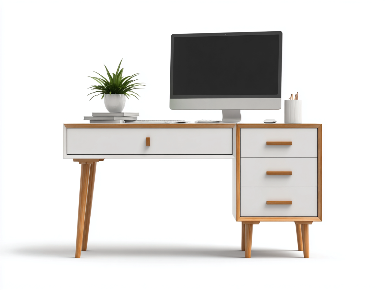 Biurko w stylu skandynawskim łączy naturalne materiały z prostą formą, tworząc funkcjonalne miejsce do pracy i nauki. Kompaktowa konstrukcja sprawdzi się w mniejszych przestrzeniach, zapewniając jednocześnie wygodną powierzchnię roboczą.