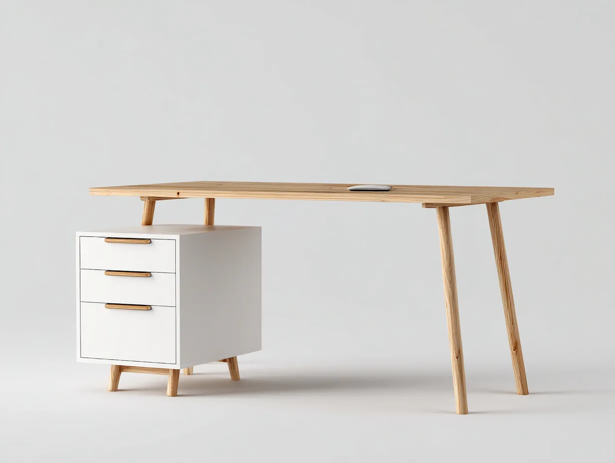 Biurko inspirowane stylem skandynawskim łączy naturalny wygląd z funkcjonalnością, tworząc wygodne miejsce do pracy, nauki oraz organizacji przestrzeni domowej. Prosta konstrukcja oraz jasna kolorystyka sprawiają, że mebel dobrze komponuje się z nowoczesnymi wnętrzami.