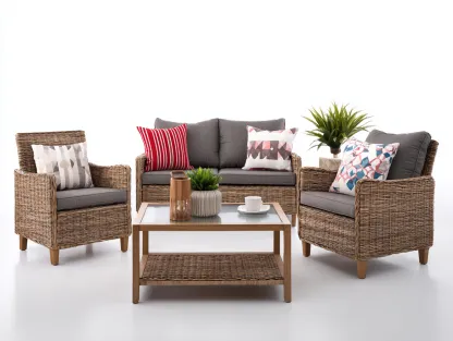 Sofy ogrodowe tworzą praktyczny zestaw wypoczynkowy do ogrodu, na taras lub do strefy relaksu przy domu. Klasyczna forma z wyraźną strukturą plecionki łączy się z prostą konstrukcją stolika, co pozwala stworzyć uporządkowaną i wygodną przestrzeń do codziennego użytkowania na świeżym powietrzu.
